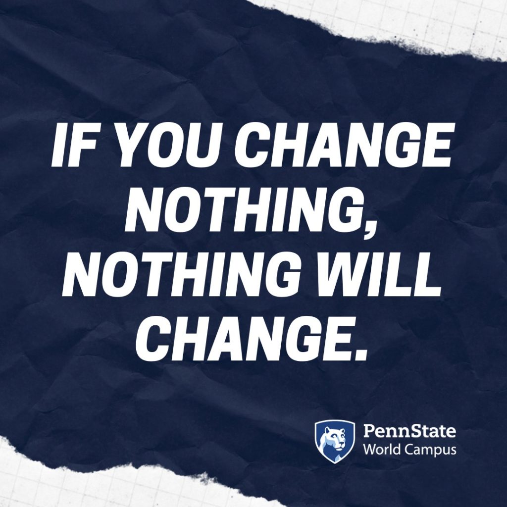 05.30.2021 @07:57PM by Aaron Hagenbuch|Published 05.30.2021 Here's to doing what needs to be done this week! Make it great, Penn Staters 🔵⚪✅ #SundayMotivation #WeAre #Unstoppable pic.twitter.com/ocbm6N4jSz— Penn State World Campus (@PSUWorldCampus) May 31, 2021 https://www.instagram.com/p/CPhCt8VLiyp/ https://www.facebook.com/psuworldcampus/photos/10159274177232618/